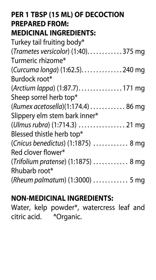 The health of your body is only as strong as the health of your cells. That’s why for decades, people have relied on the renowned detox formula Flor•Essence® to gently cleanse the whole body at the cellular level. Now, you can trust Flor•Essence® with Turkey Tail and Turmeric to not only detoxify, but build cellular immunity too. This formula starts with the great-8 herbs found in our original Flor•Essence® formula: burdock root, sheep sorrel, slippery elm, watercress, blessed thistle, red clover blossom, rhubarb and kelp. It then adds immunomodulating turkey tail and antioxidant turmeric to fortify immunity, from the cells on up.