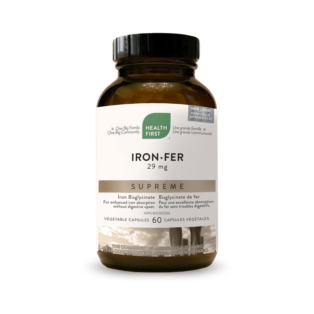 Iron deficiency due to anemia is one of the world’s most common nutritional disorders. Premenopausal women are the group most susceptible to being iron deficient, but an increased need for iron during pregnancy and lactation is also a common cause of iron deficiency. Health First Iron Supreme is formulated with patented Ferrochel® iron, an easy-to-absorb and non-constipating form of chelated iron. Ferrochel® is not affected by dietary factors that can interfere with iron absorption. Iron Supreme includes a complex of vitamin C, folic acid, vitamin B12, and other important B vitamins, minerals and vegetable extracts designed to further support absorption.